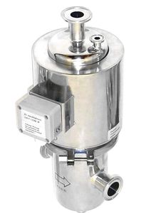 Edelstahlgehäuse (1.4404) in L -Version. Am Gehäusedom und am Ein-und Ausgang: TC-50,5 mm Anschlüsse. Am Gehäusedom befindet sich noch ein TC-25 Anschluß. Dieser Anschluß ist für einen Pt-100 Temp. Fühler vorgesehen.